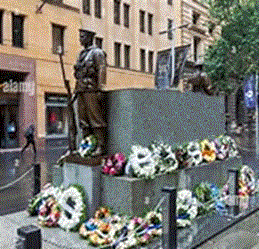 The Cenotaph, Martin Place Sydney. Place the pointer over it to hear 'The Last Post'.