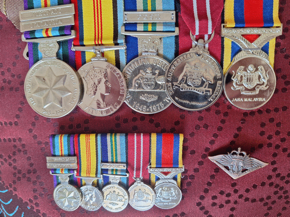 Jasa Malaysia Medal, and Australian Returned From Active Service Badge.